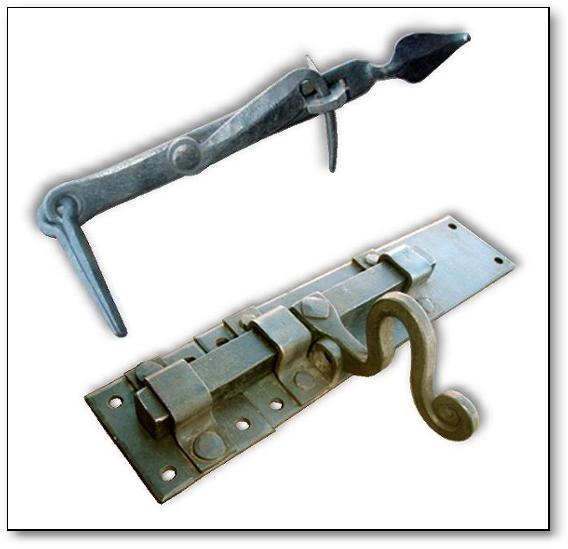 Early style hasp and heavy bolt with padlock hole.
